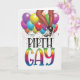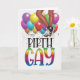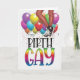 A fabulous card to send to the young gay person on their birthGAY with vibrant gay pride colors in balloons and text; and a pair of brown-skin teen or tween legs in high tops.