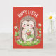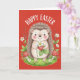 Carte Happy Easter Cute Hedgehog Holding Strawberry