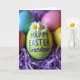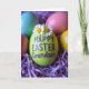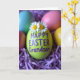 This design shows a lime-green egg-shaped centerpiece with a smooth, glossy surface, set in a cozy spring arrangement 🐰. Across the front of the green egg, the message “HAPPY EASTER Grandson” is placed in strong purple letters, centered and easy to read. Two small daisy-like flowers sit gently on top, their white petals and yellow centers leaning close together like a sweet pair. Around the main egg, other softly colored eggs—pink, yellow, and light blue—fade slightly into the background, giving the scene a friendly, gathered-together feel 🐇. Everything rests in a nest of crinkled paper shreds dyed a light lavender, adding texture and a soft cushion underneath. Warm, gentle lighting brings out a subtle shine on the painted eggs and keeps the flowers looking fresh without harsh shadows. The background stays softly blurred so your eye stays on the purple lettering and the bright green egg. The two daisy-like blooms have crisp white petals and sunny yellow centers perched at the very top of the green egg.