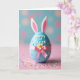 This design shows a sky-blue egg-shaped treat topped with tall bunny ears 🐰, set like a sweet centerpiece for a first Easter moment. Across the front of the egg, white uppercase text reads “HAPPY 1st EASTER,” centered and easy to spot against the blue. A glossy pink ribbon wraps around the middle and is tied into a neat bow, giving the egg a dressed-up look like it’s ready for a photo with someone special. Tucked into the bow is a small white flower with a sunny yellow center, adding a gentle, affectionate touch. The ears are white on the outside with bright pink inner panels, angled slightly inward as if leaning in close like a friendly nuzzle 🐇. Behind it, soft light washes over a blurred background of pink and blue circles, keeping the focus on the decorated centerpiece. Along the bottom, a blush-pink surface is sprinkled with tiny candy dots in pale blue, yellow, orange, and pink.