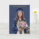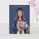 Send your graduate the most beautiful card she has ever received. This stunning Class of 2026 graduation greeting card features an original oil painting-style portrait of a smiling young woman in a navy cap and gown, surrounded by a lush garden of blush roses, lavender, soft peonies, and pastel blooms in full celebration.