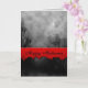 Carte Halloween Happy personnalisée avec des lettres de script grungy contre une barre oblique rouge dégoulinant contre un ciel éffrayant avec des arbres brumeux le long d'une route obscurcie, corbeaux gothiques et une pleine lune nuageuse.