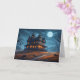 Cette carte présente une maison hantée spooktaculaire après la tombée de la nuit et sous une pleine lune. Cette carte de voeux serait idéale pour les amis, la famille et les collègues.
