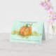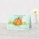 Salutations d'Halloween personnalisées pour un petit enfant sucré décoré d'un citrouille heureux dans un coin de feuilles d'automne sur une main arrière - plan pastel vert menthe peinte à l'aquarelle. Belle carte de souvenir à customiser pour un petit spécial. L'intérieur a une teinte coordonnée de vert menthe et de texte que vous pouvez modifier pour répondre à vos besoins.