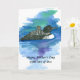 A Mother's Day card featuring a black and white loon and her loonlet riding on her back as they glide through the water on a calm day illustrated with ink and watercolor. On the inside is the même image, but faded and you can edit the message to fit your needs.