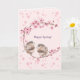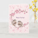 淡いピンクの桜と、かわいいすずめの愛らしいグリーティングカード!