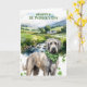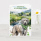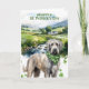 Perfect for dog lovers, Irish Wolfhound owners, and anyone who loves Ireland-inspired art, this card blends soft greens, natural textures, and a timeless watercolor style. The inside message wishes the recipient luck, rainbows, and wagging tails—making it ideal for heartfelt holiday greetings.