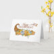 Simple, yet pretty Thanksgiving card features a lovely watercolor design of a cornucopia filled with pumpkins and sunflowers coupled with bold font that spells out Happy Thanksgiving. Blank inside. Pretty printed or sent digitally.