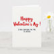 This greeting card keeps things simple with a white background and two lines of funny, flirty text. Near the upper middle, it says “Happy Valentine’s Ay !” in large red script that looks like quick handwriting. The red lettering is the main focus, and the little “Ay!” makes the greeting feel casual and teasing. Below that, in much smaller black block-style letters, it reads “( YOU CAN GIVE ME THE D LATER)”. The black line sits under the red message like a quiet side note, adding a cheeky, adult joke without showing any characters or objects. The wide open white space around the words makes the red and black text stand out clearly and keeps the design focused. It’s a light, romantic pick for someone who likes humor with their Valentine’s note ❤️💌🍫. Hope it helps you share a little extra affection and fun this Valentine’s Day.