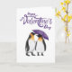These two cute watercolor penguins are celebrating valentine's day and weathering the storm together under their purple umbrella.