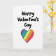 This greeting card features the message “Happy Valentine’s Gay” in thick, hand-lettered black script across the top center. The letters look loose and handwritten, with a friendly, casual flow that feels personal. Under the text sits a large heart outlined in black, drawn with slightly uneven lines that give it a handmade look. Inside the heart are horizontal rainbow stripes in purple, blue, green, yellow, orange, and red, standing out clearly against the white background. The simple white setting keeps all the attention on the message and the pride heart, tying the design to love, acceptance, and friendship. Overall, it feels upbeat and welcoming, like a direct note of support you’d be happy to give or receive ❤️💌.