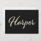 Une belle et noble carte / carte de vœux / carte cadeau / carte d'anniversaire avec un design d'écriture manuscrite en or blanc liquide pour Harper.