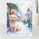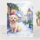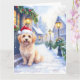 Carte Havanese Snowy Village Walk Santa Hat Christmas