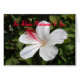 "Ko Aloha Makamae E Ipo" signifie "Chérie, tu es si précieuse" en hawaïen. "E Hoomau Maua Kealoha" dit "Puisse notre amour dernier pour toujours." Cette carte est parfaite pour votre Saint-Valentin. Cet hibiscus blanc (Hibiscus waimeae) est originaire d'Hawaï et est l'une des rares espèces d'hibiscus parfumé. Les Hawaïens appellent cet hibiscus "KokiGo kea", ce qui signifie "blanc comme neige".