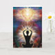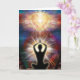 Silhouette of meditator saluting heart of light above with colorful abstract background. By Daniel B. Holeman.