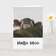 Carte de voeux "Hello Moo". Vous pouvez ajouter votre propre message, modifier le texte et la police si vous le souhaitez. Il suffit d'aller à l'onglet coussomise et de faire une carte unique.