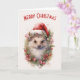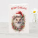 Carte Hérisson dans un chapeau de Noël Rouge Poinsettia
