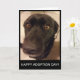 Le chien triste avec des mots indiquant le jour heureux d'adoption fait une carte gentille.