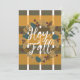 Carte de vœux Hey Fall avec couronne de carreaux et d'automne