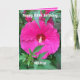 Cette magnifique carte du 100e anniversaire présente un hibiscus rose chaud sur le devant. Les mots "Joyeux 100e anniversaire" apparaissent en haut. En outre, vous pouvez customiser le nom de la dame d'anniversaire qui apparaît juste en dessous de l'hibiscus. A l'intérieur vous trouverez un beau souhait d'anniversaire pour un enfant de 100 ans. Copyright Kathy Henis