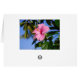 Cette carte avec un hibiscus rose chaud est parfaite pour personnaliser pour de nombreuses occasions. Dans l'arrière - plan se trouvent les frondes de la paume du voyageur. Sur le dos de la carte se trouve un autre bel hibiscus rose.