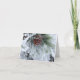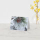 Carte vierge de note avec la belle scène d'hiver d'un cône de pin et de pin couvert dans la neige. Affranchissement assorti