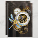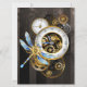Cadran d'antiquités avec or et lances en laiton, décoré de libellules mécaniques sur arrière - plan brun rayé. Steampunk.