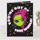 Cet extraterrestre branché vient sur Terre pour la mode, les fêtes, le rockin et le rollin'. Un joli dessin animé avec une alien à la peau verte sans bouche, de grandes boucles d'oreilles violettes et un poil rose encore plus gros. Elle a des yeux énormes avec des cils étranges. Cette carte de Saint-Valentin comporte un message amusant sur le devant : "Vous êtes hors de ce monde !" (Vous pouvez la changer si vous le souhaitez !). Et à l'intérieur vous pouvez customiser un message à votre personne spéciale. 👽 Art de Jessica Amber. Pour plus de produits géniaux consultez ma boutique : Zazzle.com/JessicaAmberArtist 👽 Pour des commandes sur mesure, envoyez-moi un message sur Zazzle