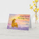 This hand painted watercolor horse sympathy card features a gentle cognac brown horse standing quietly in a soft lavender field beneath a glowing sunset sky. Designed to offer comfort after the loss of a beloved horse, this peaceful memorial card reflects the deep bond between horse and rider through calming color, open space, and meaningful symbolism. Thoughtfully created for equestrians, horse owners, and animal lovers, this comforting condolence card provides a heartfelt way to express sympathy, remembrance, and support during a difficult time.
