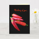 Cette carte d'amitié présente de brillants piments rouges rouge écarlate sur un pur arrière - plan noir. Il y a plus de poivrons à l'intérieur. Le texte peut être customisé selon vos besoins.