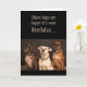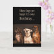 Ces trois chiens Boxer sont heureux c'est votre anniversaire avec des chiens Boxer à l'apparence attentive. Texte intérieur : ils espèrent aussi que vous partirez avec votre gâteau. Espérons que non, avoir un Anniversaire sans histoire mais heureux!