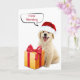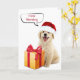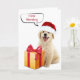 Joli chiot de récupération d'or avec cadeau de Noël emballé en or et attaché avec un arc rouge. Tout le texte est modifiable.