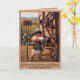 Célébrez une grande étape de la vie d'un tout-petit avec cette carte drôle des premiers pas de bébé, parfaite pour l'épouse d'un agriculteur ou une famille de la campagne. Cette carte de vœux à l'humour noir représente un bébé en 3D de style Pixar portant des bottes de ferme, une casquette plate et un petit gilet, buvant du lait au biberon tout en tenant fièrement une fourche à côté de machines agricoles victoriennes.