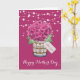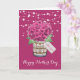 Belle carte de Fête des Mères florale représentant un bouquet d'hydrangea rose et de baby's breath dans un pot Mason avec une étiquette personnalisée. Personnalisez facilement ce modèle pour créer une carte unique pour la Fête des Mères. Cette carte peut être personnalisée pour n'importe quelle occasion.