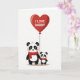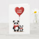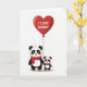 This card shows two panda characters standing close together on a white background, holding paws in a sweet, quiet moment. The bigger panda stands protectively beside the smaller cub, and both have gentle smiles with a soft pink blush on their cheeks. Each panda wears a red scarf that adds a cozy touch against their black-and-white fur. Above them floats a large red heart-shaped balloon with a slight shine, tied to the scene like a simple symbol of love. On the balloon, the words “I LOVE DADDY” appear in white, simple all-caps letters, centered where you notice it right away. A small shadow under their feet lightly grounds them, keeping the focus on their connection. It feels meaningful to give because it captures caring, closeness, and the comfort of family love 🥰❤️.