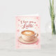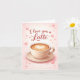 Let them know you love them with this punny Valentine's card featuring an illustration of a coffee mug with a heart swirled in the foam and the phrase I Love You a Latte centered above, created by digital artist Jayne Wilson.