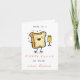 Cette carte humoristique avec le texte "Voici un petit toast à votre nouvelle maison" et une illustration mignonne de toast buvant du champagne est parfaite pour envoyer vos vœux de bienvenue à quelqu'un qui apprécie l'humour et/ou l'art de dessin animé kawaii. Comme le texte peut être modifié, vous pouvez utiliser la carte pour d'autres occasions. Cliquez sur "Personnaliser ce modèle" pour personnaliser le message et les noms. Si vous souhaitez modifier les couleurs des textes, allez dans "Modifier à l'aide de l'outil de conception".