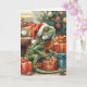 Cette carte de Noël ludique présente un iguane festif portant un chapeau de Père Noël, entouré de cadeaux aux couleurs vives sous un arbre de Noël scintillant. Avec son esprit de vacances excentrique, cette carte est parfaite pour les amateurs de reptiles, les adeptes des animaux de compagnie, ou toute personne qui aime une touche joyeuse et humoristique sur les salutations de vacances traditionnelles.