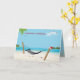 Plage tropicale avec hamac et casquette du Père Noël dans le sable avec étoile de mer pour Noël.