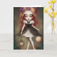 Alice Illustration carte de voeux de Ricaso - une illustration d'Alice tenant une horloge, elle a des fleurs violettes dans les cheveux, elle porte une robe grise. Illustration Copyright © Ricaso