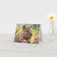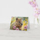Quokka adorable assis parmi de belles fleurs sur ce carton de vœux vierge.