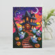 Explorez cette magnifique illustration d'Halloween qui présente une maison hantée éffrayante sous une lune de croissant, entourée de citrouilles et d'un chemin mystérieux. Parfait pour les amateurs d'Halloween !