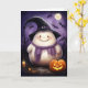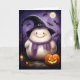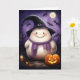 Carte Illustration de sorcière fantôme mignonne Hallowee