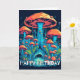 Cette carte d'anniversaire créative présente un dessin coloré de champignons entouré d'une forêt riche. Vous pouvez ajuster toutes les options en fonction de vos préférences.