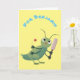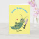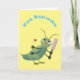 Ce mignon cricket vert aime faire du sport. Dessiné dans un style joyeux de dessin animé en buggy.
