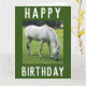 Carte d'anniversaire pour un amateur de cheval ou pour quelqu'un qui aime les chevaux. L'image est une photo d'un cheval blanc broutant dans un champ.