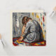 A blank card with an impasto oil illustration of a woman sitting on the floor in pain with depression. This depicts an emotionally charged illustration of someone who is really struggling.