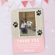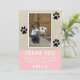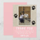 Carte de remerciement photo d'anniversaire avec impression de patte rustique rose. Jolie carte de remerciement d'anniversaire photo avec des empreintes de pattes noires sur une texture rustique rose et beige. Insérez votre photo et personnalisez avec votre nom.