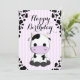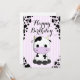 Une petite vache mignonne sur des rayures violettes et une vache imprime la carte d'anniversaire de enfant arrière - plan.