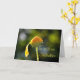In stillem Gedenken - Gelbe Blüte mit nur noch einem Blütenblatt in grüner Natur. Mit einem aufbauendem Bibeltext in der Innenseite